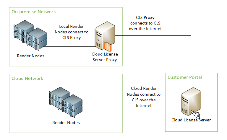 However, if security requirements prevent you from giving your local render nodes access to the internet, you can consider using a Cloud License Server Proxy on your local network. This assumes that the Cloud License Serve Proxy machine can have access to the internet.