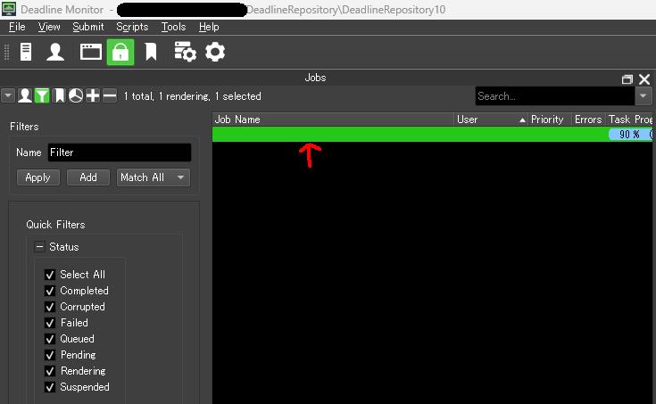 A few days ago, the jobs I submitted to Deadline stopped displaying correctly in Deadline Monitor. Rendering does occur, but during rendering, Deadline Monitor only shows Task Progress. After rendering is finished, if I restart Deadline Monitor, the job itself disappears from the list.