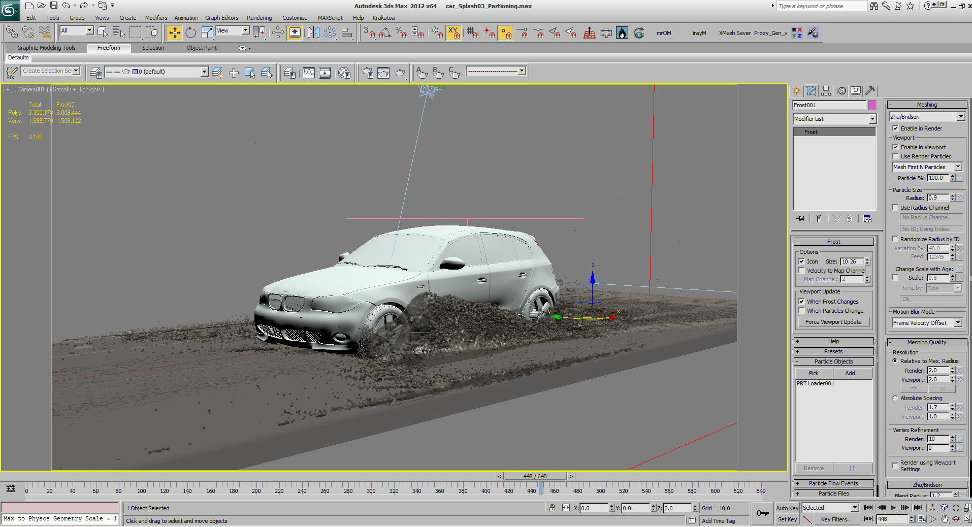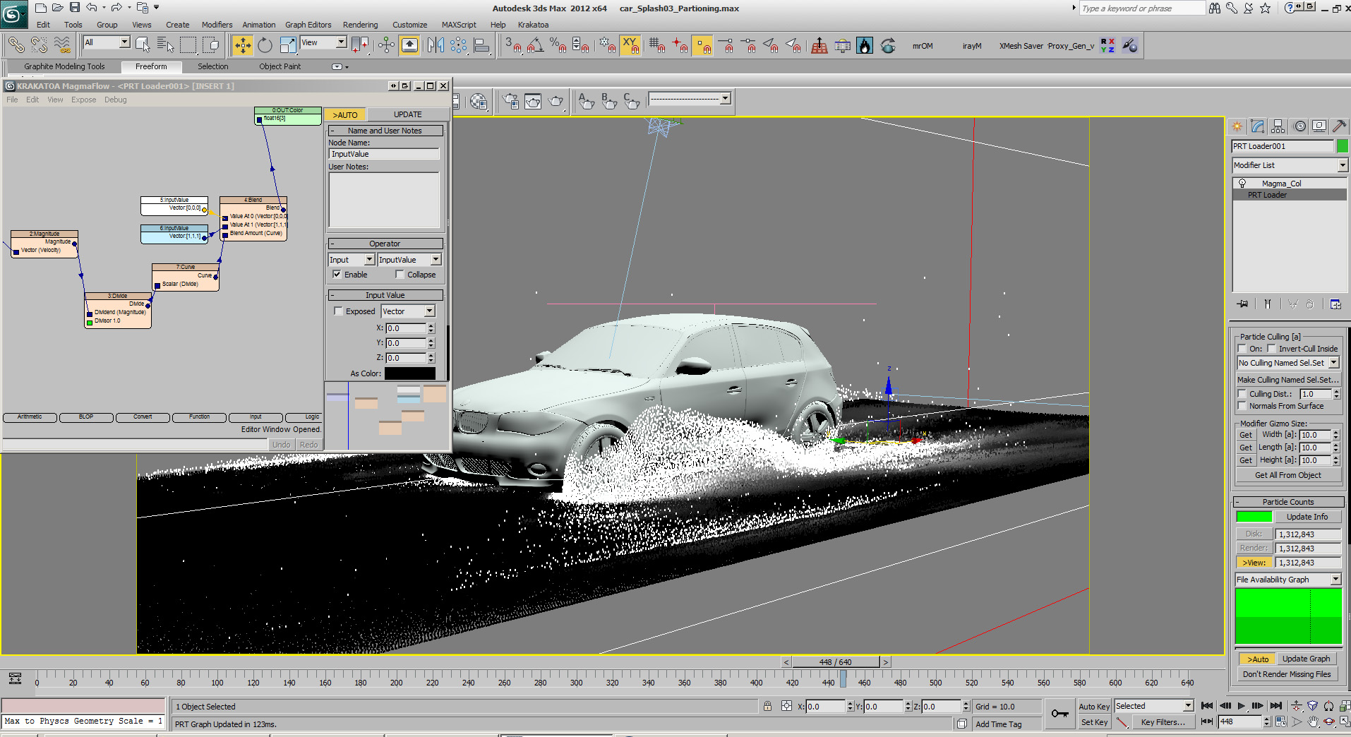 I have glu3d gpu particles exported as PRTs and loaded back with PRT loader (total 1.3mil). Now Frost is created out of PRT loader and PRT volume object created out of from Frost to increase particle counts. I set 1.2 spacing for both viewport and render. This gives around 2.2mil particles in viewport (subdivision is set on in PRT volume and also “disable subdivision” is turned off in viewport display) So it shows all particles.