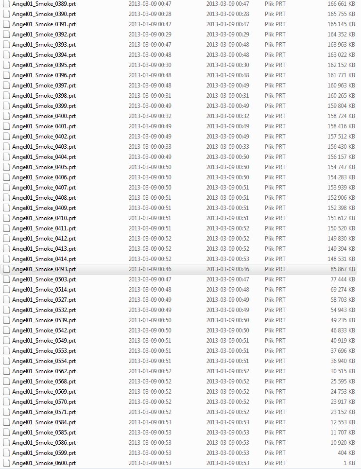 Alternatively, there is an option in the menu that lets you save a new PRT sequence to a different location. Basically it will use both the disk cache and the memory cache to dump all simulation data to new PRT files. But I don’t recommend that, because the saving will lock Max until all files are saved, and knowing your data sizes, it can take hours.